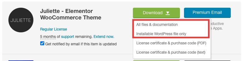 If this is your first time downloading the theme from ThemeForest, we recommend downloading the Full Theme Package to receive additional files such as exported sliders, child theme, documentation. If you’ve already downloaded the Full Packages, then you can just use the WordPress Installable File.